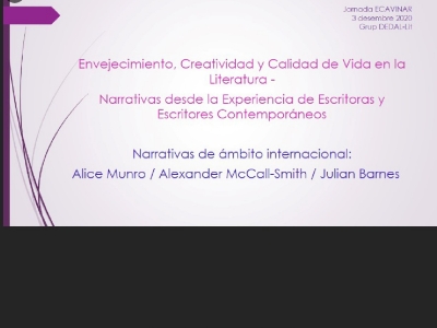 11:50 - 12:10 Wisdom and fiction in English narrative: Maricel Oró (Julian Barnes), Emma Domínguez (Alexander McCall Smith), Marta Gort (Alice Munro)